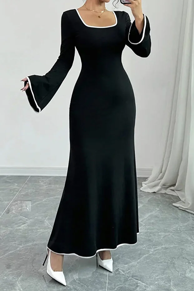 فستان نسائي أسود بفتحة رقبة على شكل حرف U من Missamour