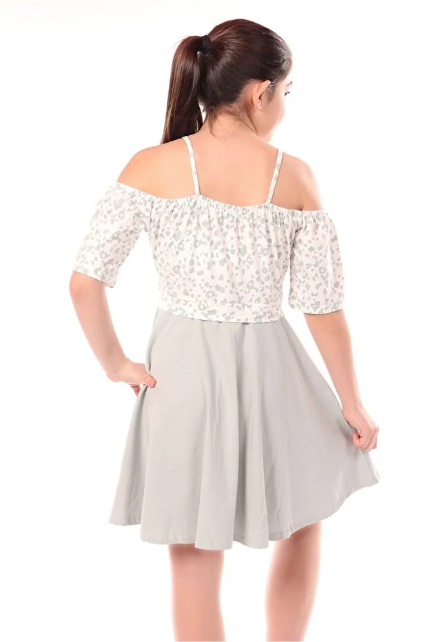 فستان Toontoy Girls ذو قصة عادية وياقة كارمن وأكمام قصيرة وحمالات - لون موحد