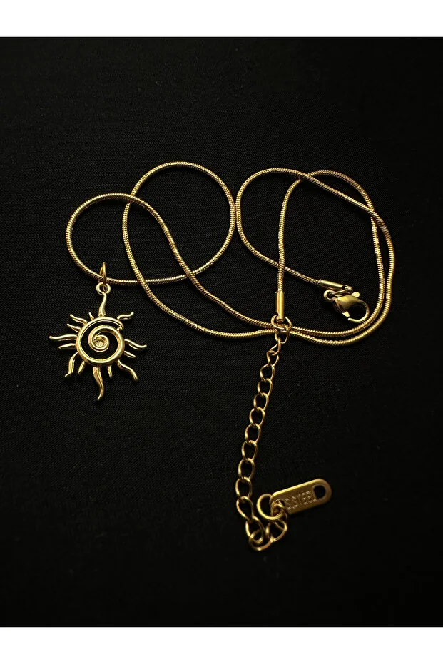 قلادة الشمس من لايكا بسلسلة فولاذية مطلية بالذهب 45+5 سم