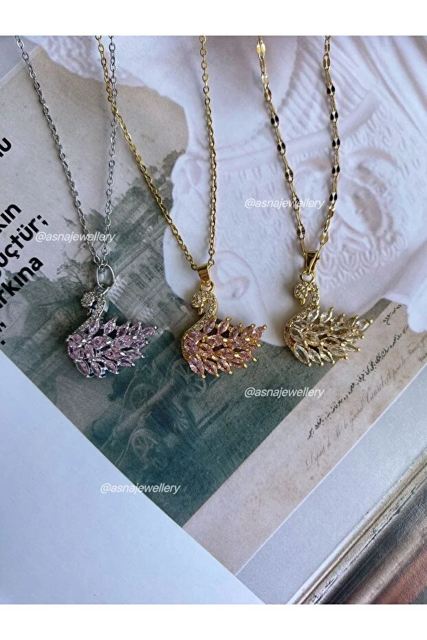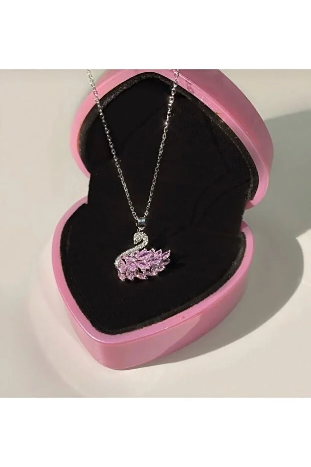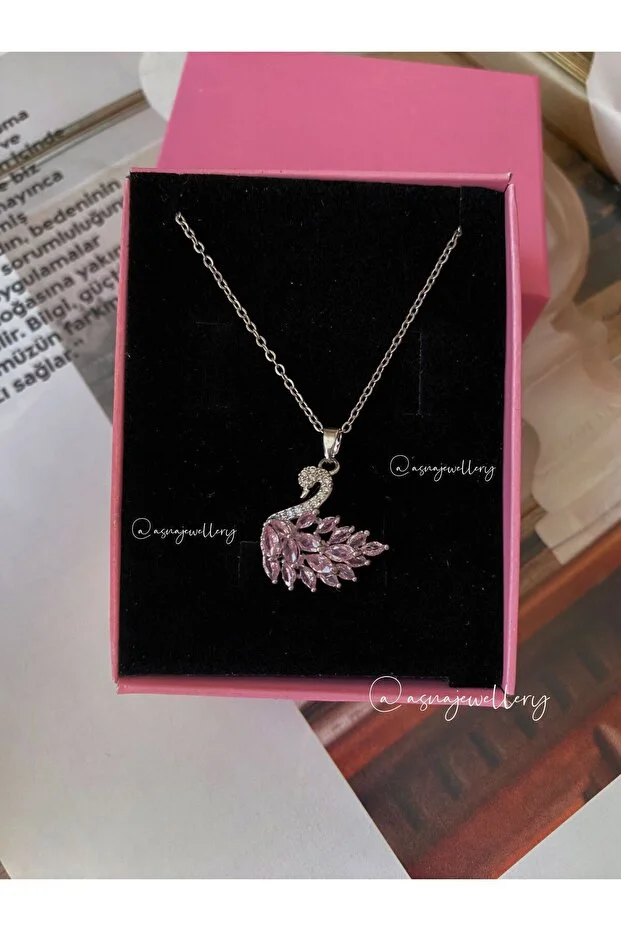 0 Review Of Product قلادة من الفضة والفولاذ مزينة بحجر البجعة الوردي من أسنا للمجوهرات