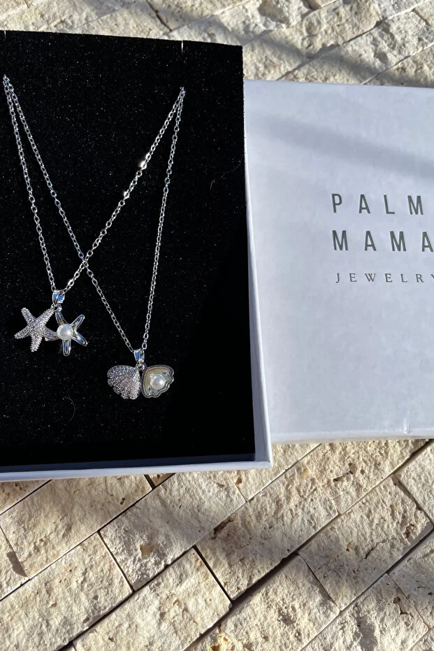 قلادة من الفولاذ المقاوم للصدأ من PALMMAMA Palm Mama Jewelry مزينة بأحجار الزركون الفضية ولؤلؤ البحر