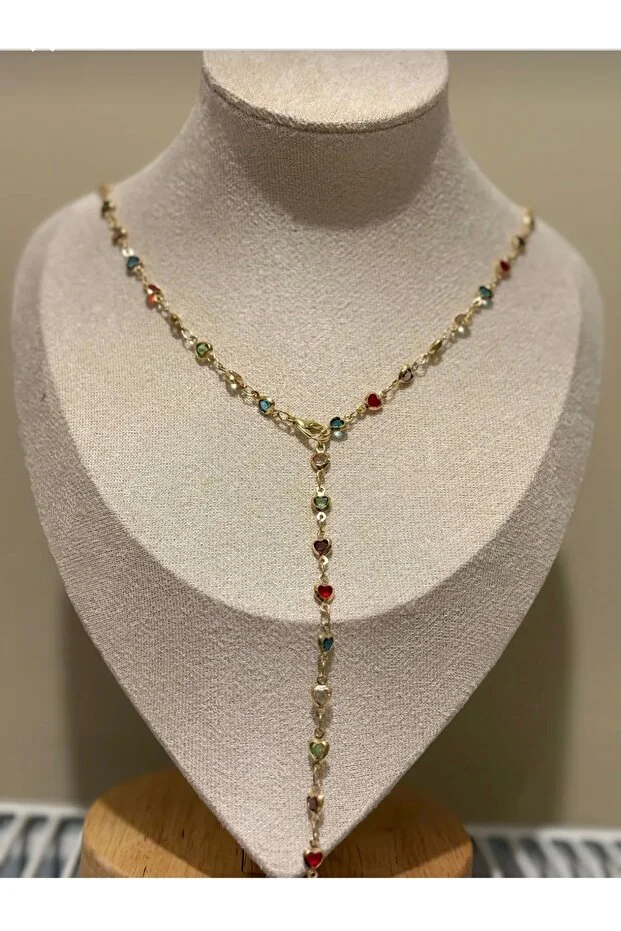 قلادة مودام هيفا النسائية على شكل قلب مرصعة بأحجار ملونة، قلادة ملونة