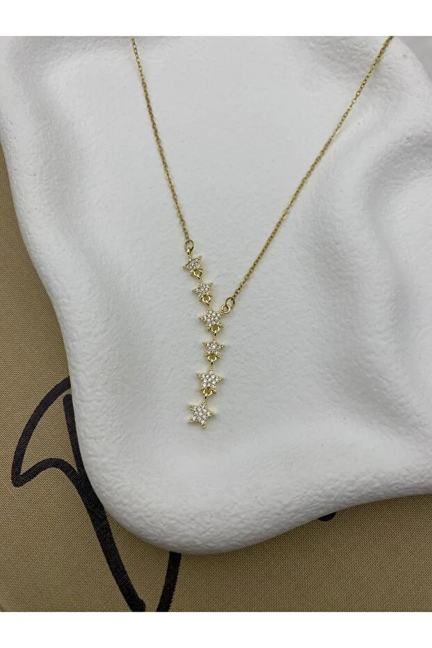 0 Review Of Product قلادة هيديف بيجوتيري ذهبية اللون على شكل نجمة Y مرصعة بأحجار الزركون، قلادة على شكل نجمة ساقطة على شكل حرف Y