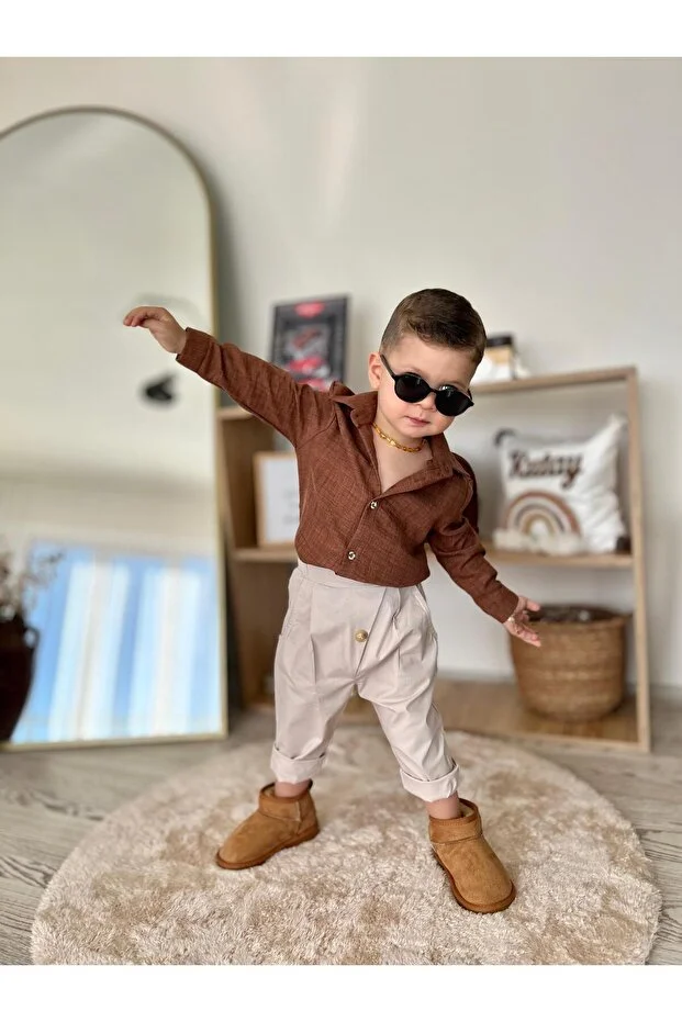 0 Review Of Product قميص أطفال بني فاتح من favorimkids للأطفال من عمر 1 إلى 4 سنوات