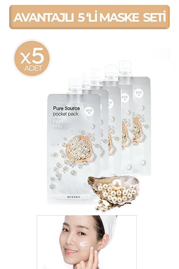 قناع النوم Missha Advantage Brightening Moisturizing قناع النوم (10 مل × 5 قطع) عبوة جيب بيور سورس (لؤلؤي)