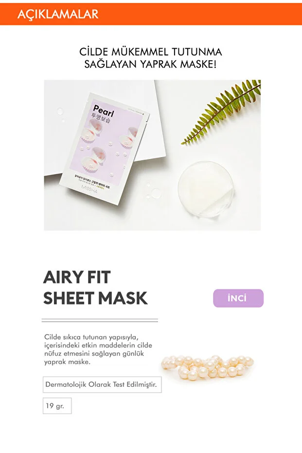 قناع الوجه الورقي من Missha Pearl Extract لتفتيح البشرة (قطعة واحدة) قناع AirSheet Mask Pearl