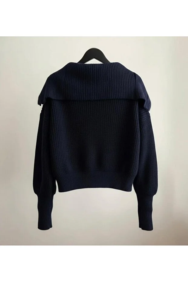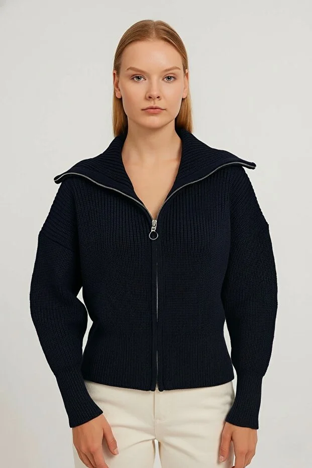 كارديجان محبوك مرن من FLEX FASHION للنساء، ذو ياقة مطوية وسحاب، شائع الاستخدام