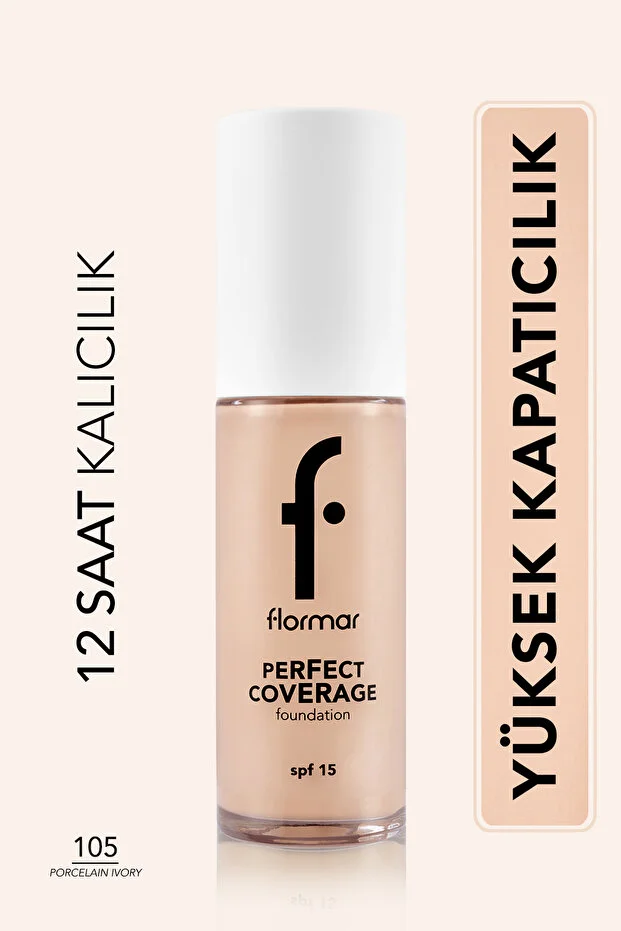 كريم أساس فلورمار ذو التغطية المثالية، عالي الصبغة، بلمسة نهائية شبه لامعة، مع عامل حماية من الشمس SPF15