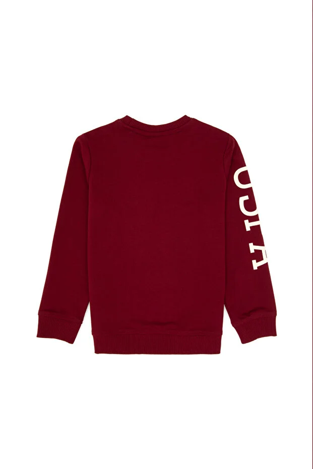 كنزة رياضية أساسية للأولاد من يو إس بولو أسوسييشن، لون عنابي، برقبة دائرية -