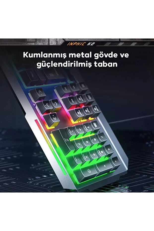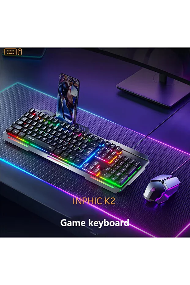 لوحة مفاتيح ألعاب سلكية K2 من جنرال براندز مزودة بمنفذ USB ولوحة مفاتيح صامتة للألعاب مزودة بـ 104 مفاتيح وحامل كمبيوتر محمول باللون الأسود