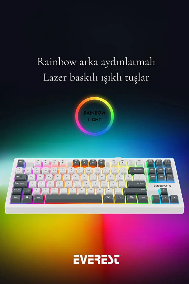 لوحة مفاتيح الألعاب التركية الغشائية Everest SILENT TKL Silent Rainbow Q KB-98 TKL