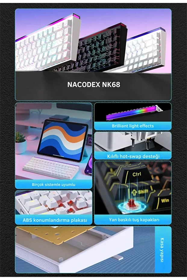 لوحة مفاتيح ميكانيكية Coverzone Contour Patterned Ambient Illuminated Red Switch Ajazz Nacodex NK-68