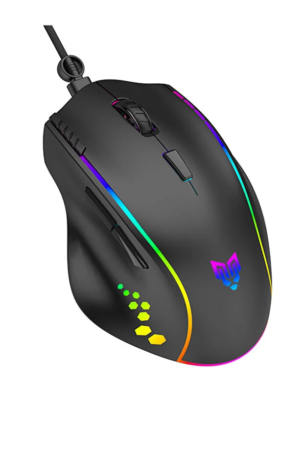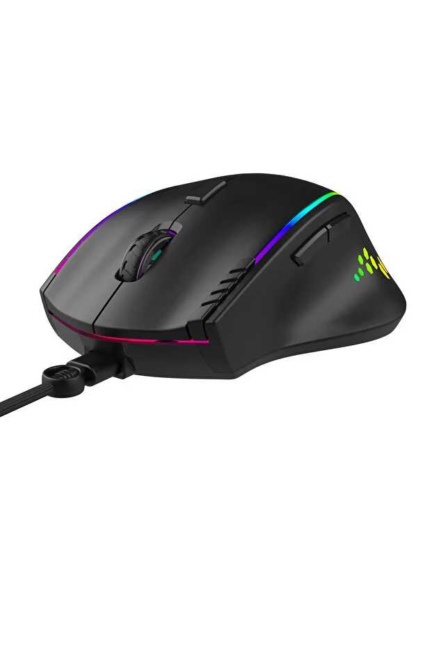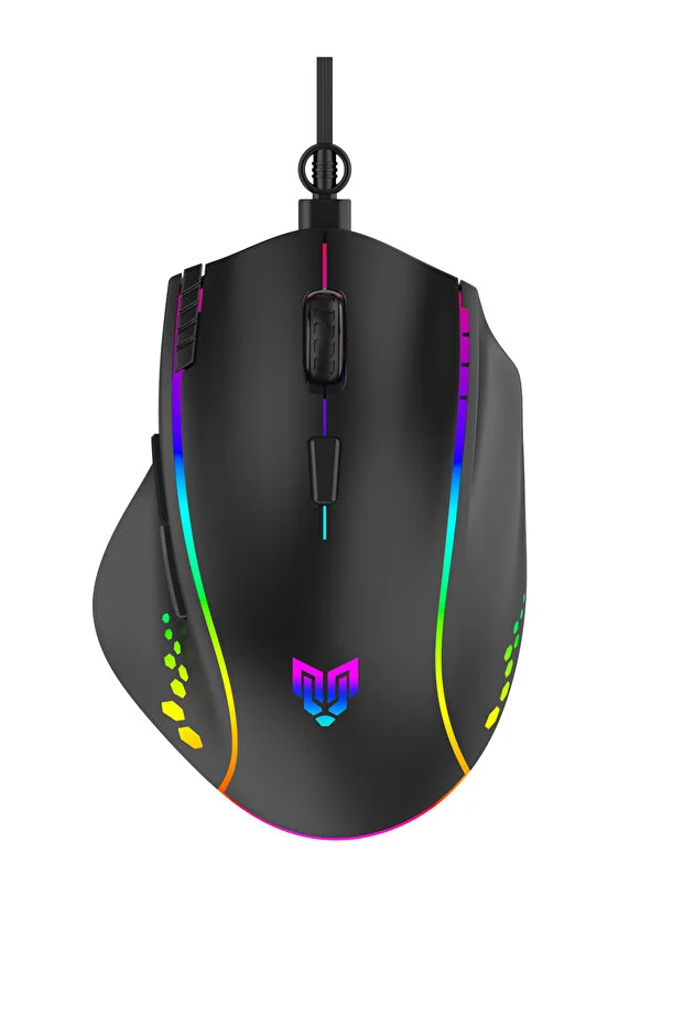 ماوس الألعاب Blueforce Luxor Macro القابل للتخصيص بإضاءة RGB بدقة 12800 نقطة في البوصة، أسود اللون، مع برنامج التشغيل المرفق.