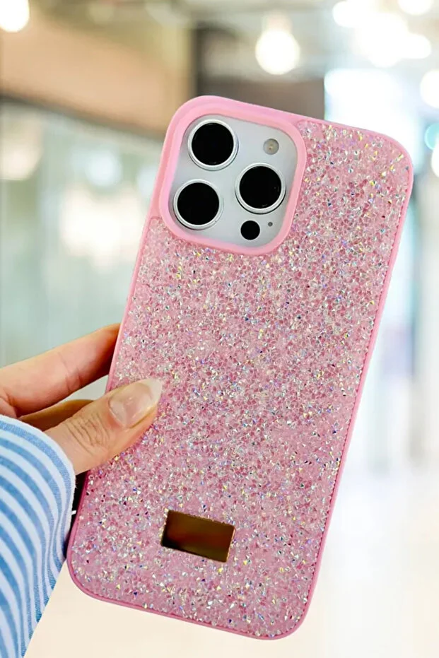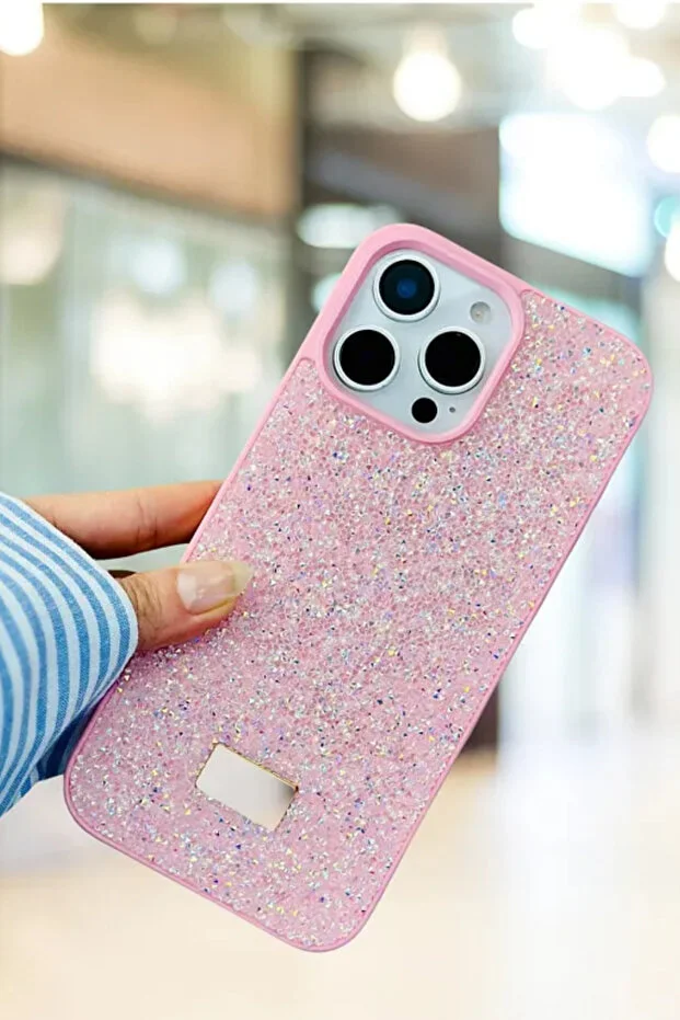 متوافق مع iPhone 14 Pro Max - تصميم ماسي، حجر وردي، غطاء سيليكون ماسي لامع