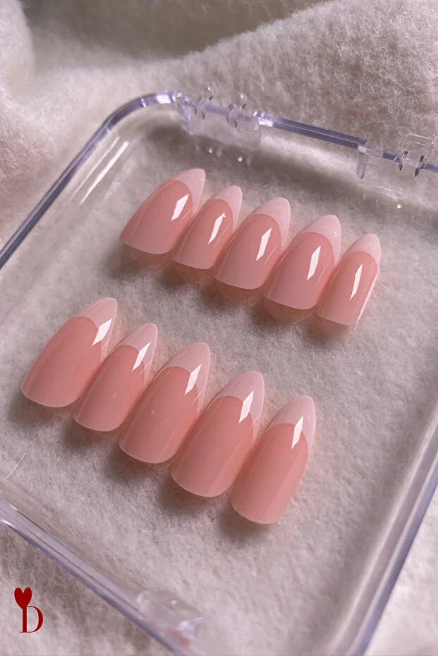 مجموعة أظافر صناعية فرنسية بلون اللوز من دامي بيوتي، مكونة من 24 قطعة مع لاصق