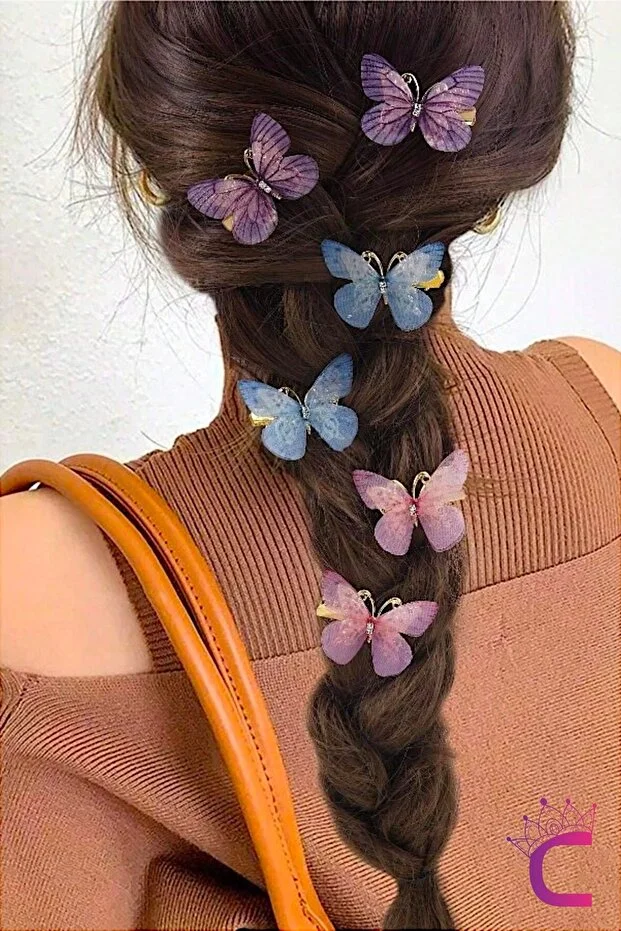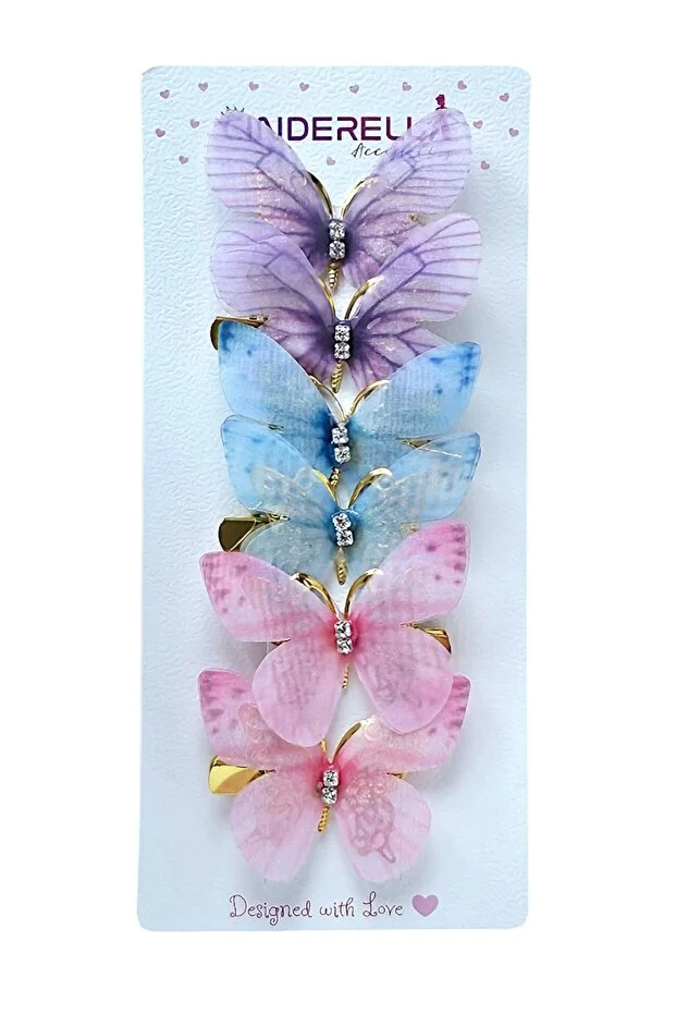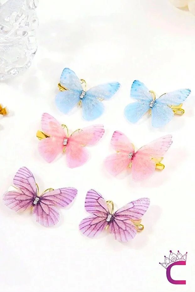 مجموعة دبابيس شعر سندريلا المتحركة الملونة على شكل فراشة، مكونة من 6 قطع، مقاس 5 سم - دبوس شعر من التول المجنح على شكل فراشة من الحجر