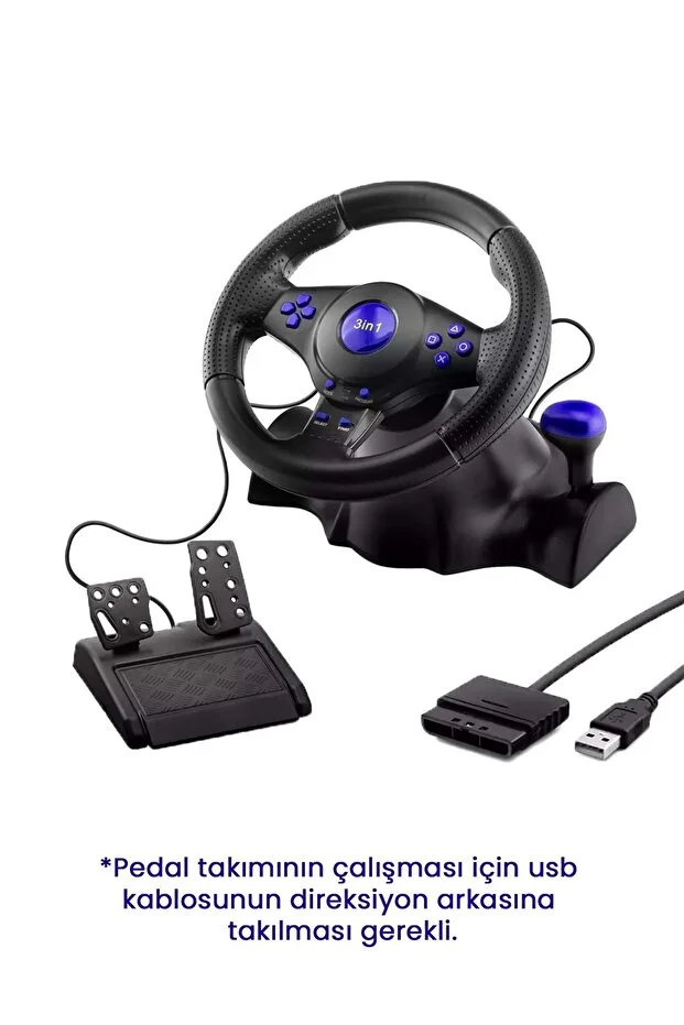 0 Review Of Product مجموعة عجلة قيادة الألعاب HADRON Vw9803 بزاوية 180 درجة 3 في 1 لأجهزة PS3/Ps2/Pc باللون الأسود
