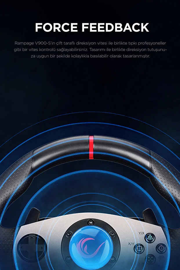 مجموعة عجلة قيادة الألعاب Rampage V902 المتوافقة مع أجهزة الكمبيوتر الشخصية، عجلة قيادة ألعاب بثلاث دواسات (متوافقة مع أجهزة الكمبيوتر الشخصية فقط)