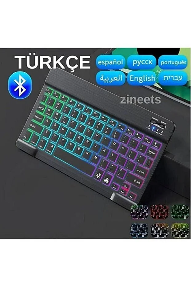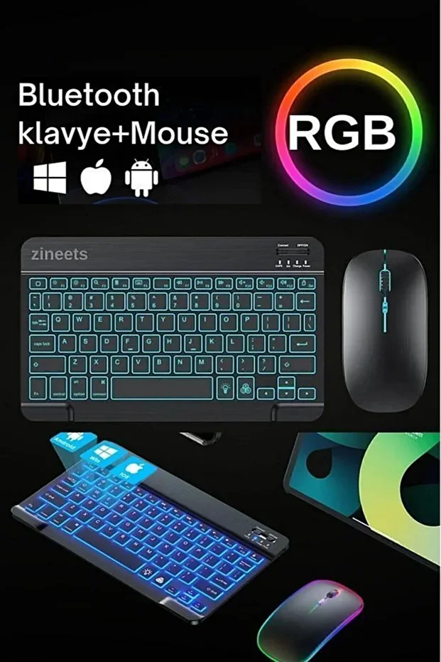 مجموعة لوحة مفاتيح وماوس لاسلكية بتقنية بلوتوث وإضاءة RGB من Zineets، مناسبة للهواتف اللوحية والهواتف الذكية المتوافقة مع نظام التشغيل Windows