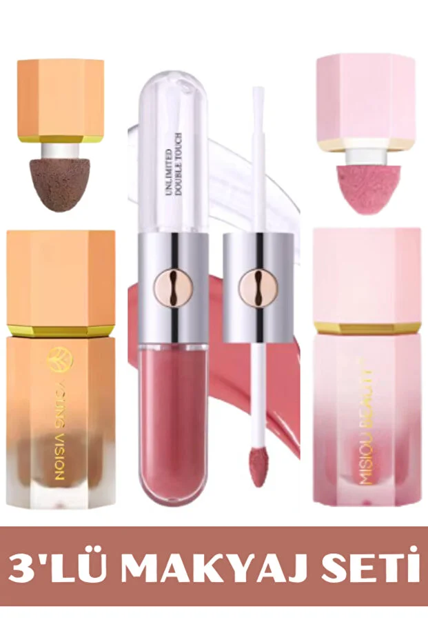 مجموعة مكياج نونوكو المكونة من 3 قطع (كونتور - أحمر شفاه - هايلايتر)
