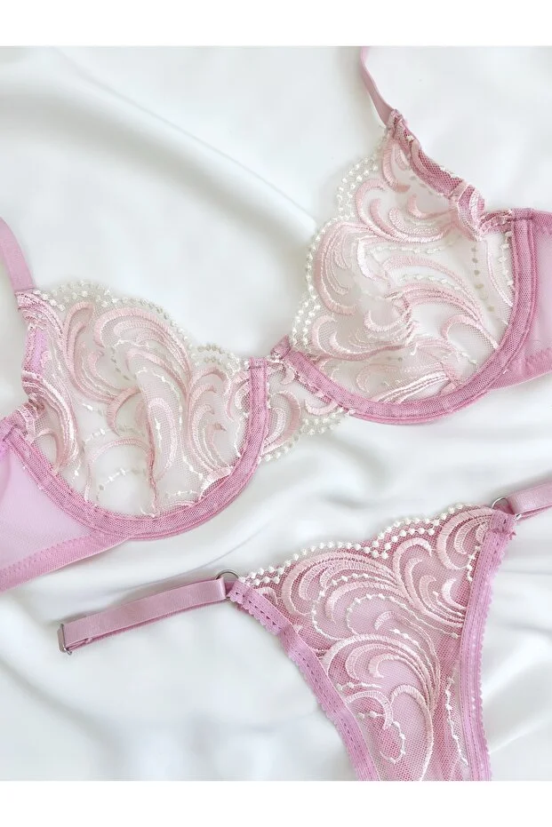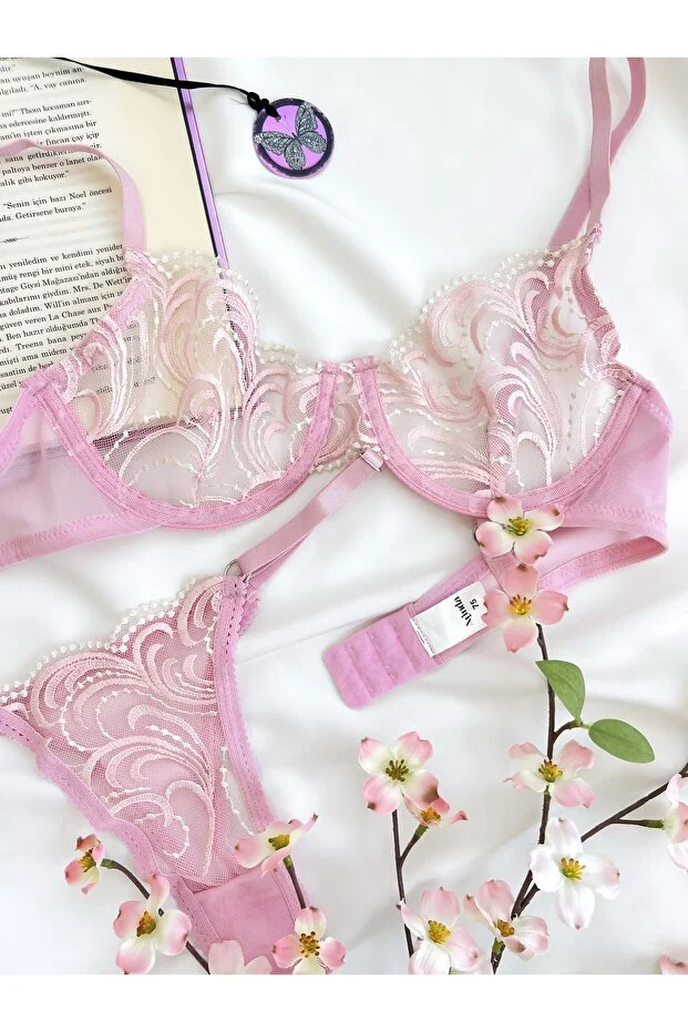 0 Review Of Product مجموعة ملابس داخلية مطرزة بمقاسات كبيرة من أميليا باريس لانجري (حمالة صدر وسروال داخلي)