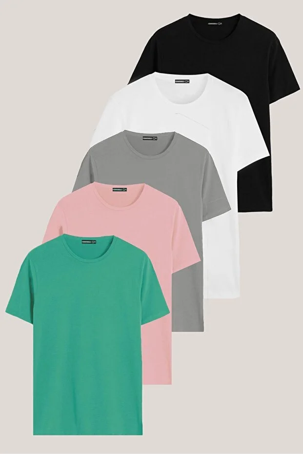 مجموعة من 5 قطع من قمصان تيشيرت قطنية قصيرة الأكمام برقبة دائرية فضفاضة من DK DAKSEL للنساء