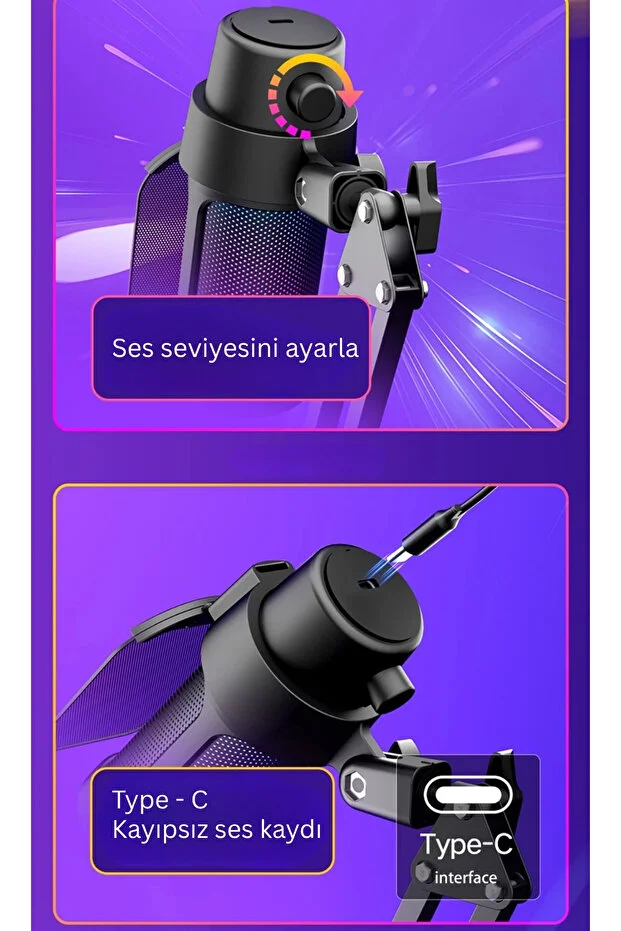 مجموعة ميكروفون ألعاب احترافية من KAZEMTECH بمنفذ USB RGB، مناسب لمستخدمي YouTube، واللاعبين، وTikTok، والمذيعين، وتصوير الفيديو، والتحدث