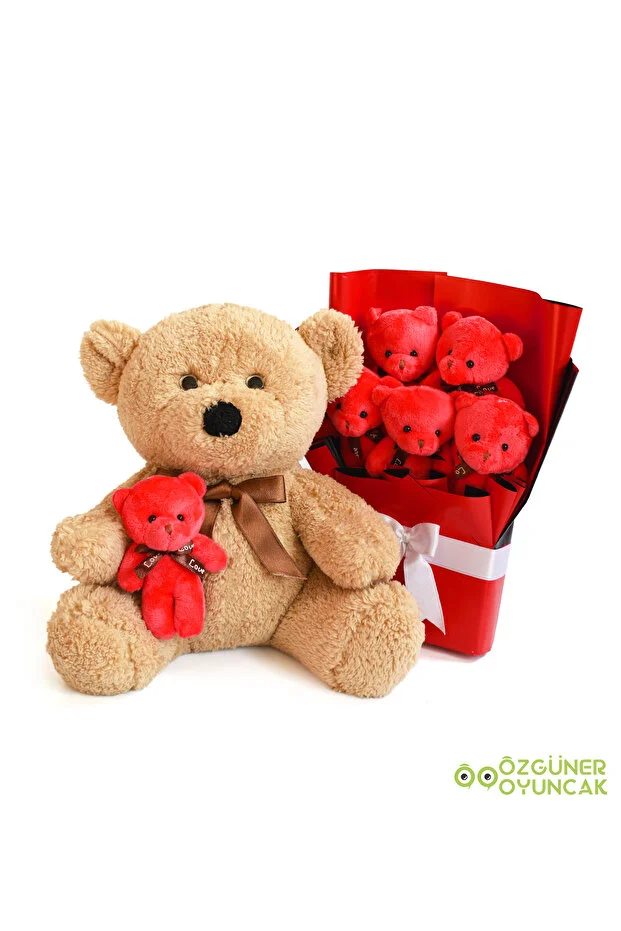 مجموعة هدايا عيد الحب من أوزغونر تويز: باقة من الدببة المحشوة ودببة قطيفة