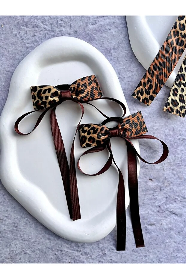 مشبك سلة بني منقوش بنقشة جلد النمر للأطفال، زوج واحد