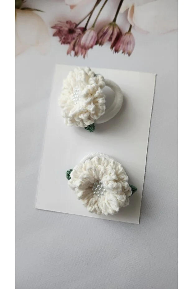 0 Review Of Product مشبك شعر مرن على شكل كرة ثلج لؤلؤية للبنات/الرضع، عبوة من قطعتين