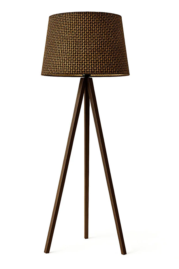 مصباح أرضي من خشب الجوز والخوص والقهوة من فيفيدو هوم