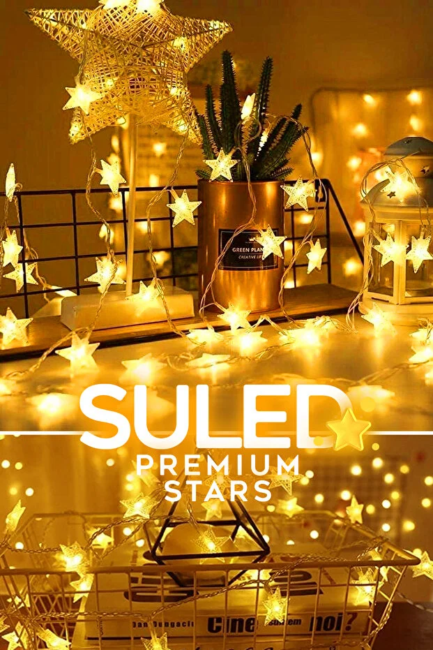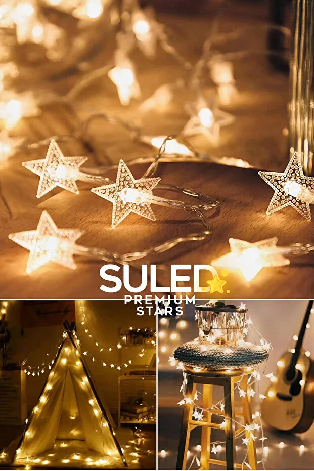 مصباح LED زخرفي بطول 5 أمتار بتصميم 20 نجمة، مزود بقابس 220 فولت، يُضفي أجواءً نهارية على الحفلات.