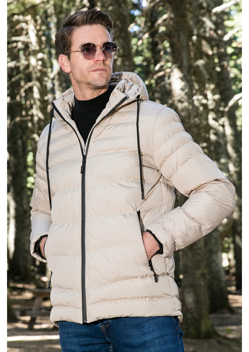 معطف بوراتي طارد للماء بقصة ضيقة ومقاوم للبرد والرياح، معطف منتفخ بقلنسوة للرجال