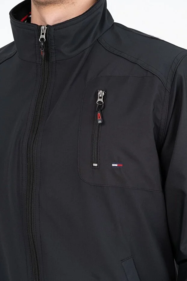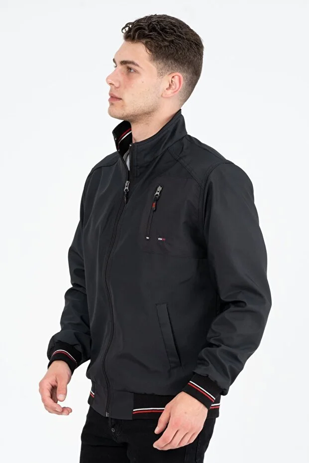 0 Review Of Product معطف رجالي موسمي مقاوم للماء والرياح مبطن بقميص أسود من Marginal City