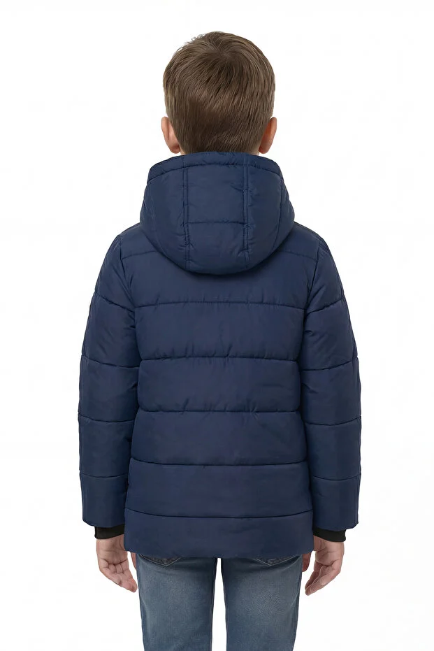 0 Review Of Product معطف شتوي أزرق داكن للأولاد من QUWWA مزود بغطاء رأس وبطانة من الفرو الأسود، خفيف الوزن، مقاوم للماء والرياح.