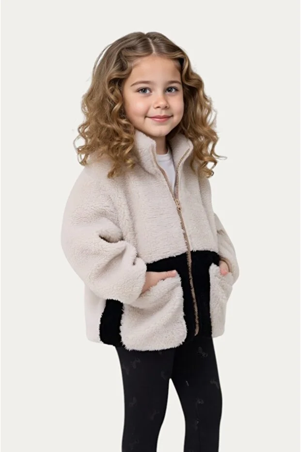 معطف شتوي ناعم أسود داكن من مونتلاند للبنات، مزود بجيوب وسحاب
