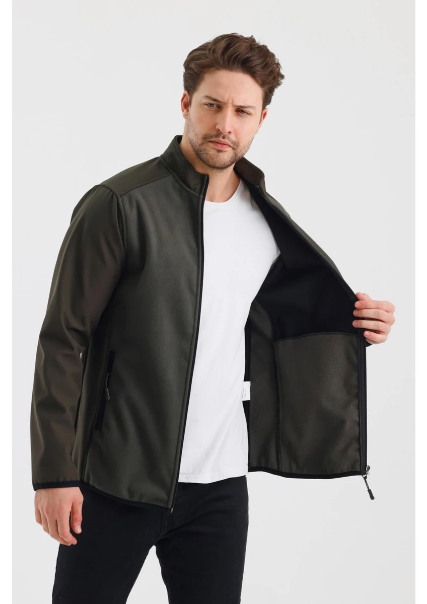 معطف من نسيج الصوف الناعم ذو الياقة العالية وسحاب وغير مبطن من