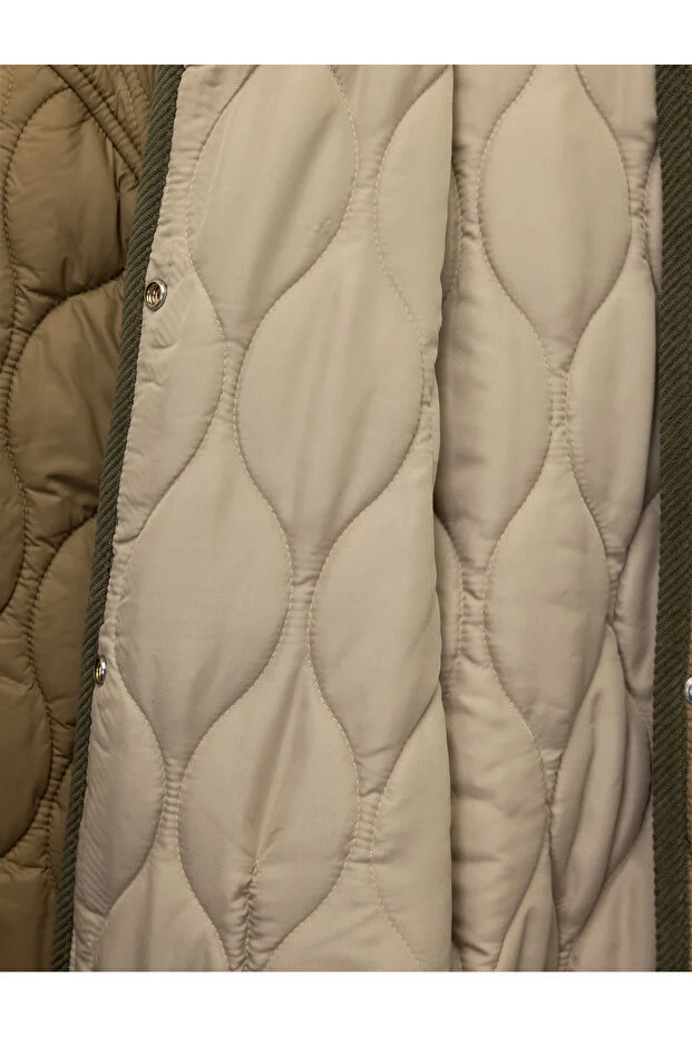 معطف موسمي مقاوم للماء مبطن بأكمام طويلة وجيوب وأزرار ورقبة دائرية
