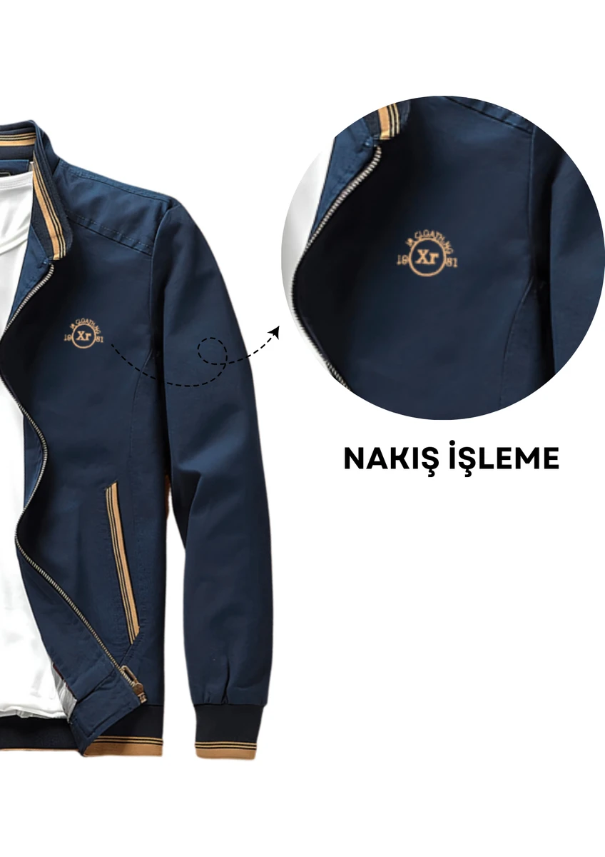 0 Review Of Product معطف وسترة Ixir موسمية للرجال مع شعار مطرز باللون الأزرق الداكن