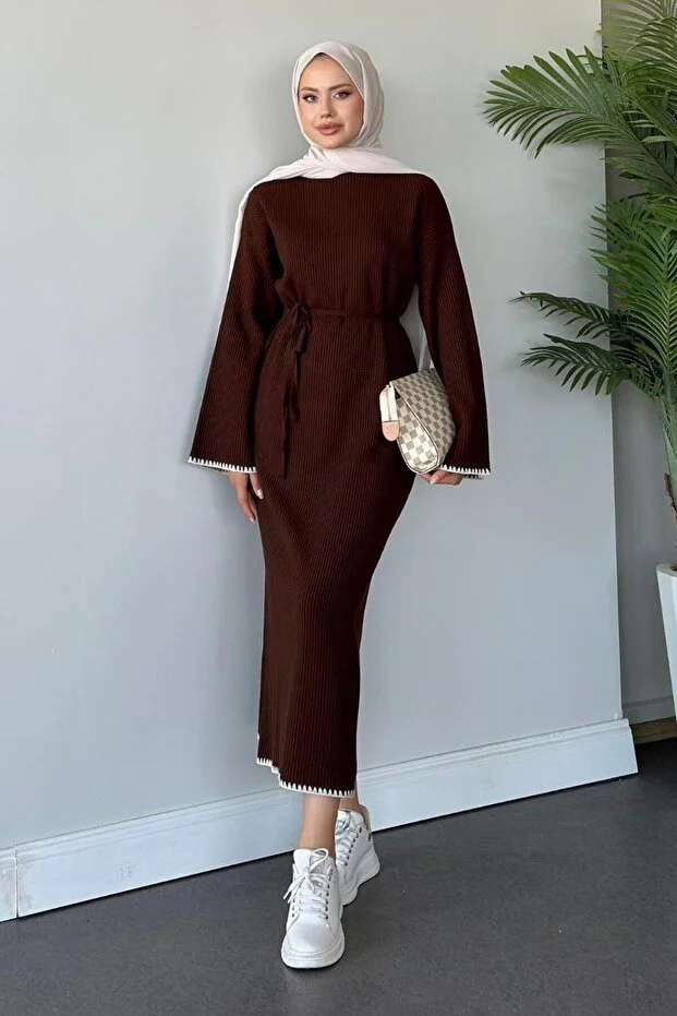 ملابس Şule من زينب ملابس تريكو فستان، بني