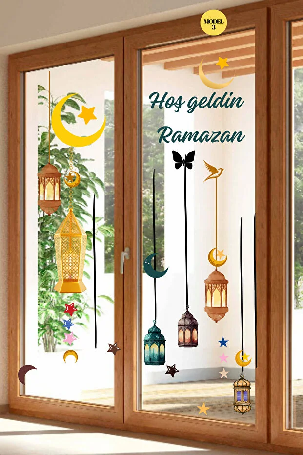 ملصقات ترحيبية برمضان، ملصقات جدارية زجاجية معلقة، مجموعة ملصقات ديكور حائط، موديل 3