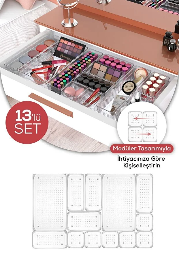منظم أدراج الخزائن من فينيف، 13 قطعة - منظم أدوات المائدة لأدراج المطبخ
