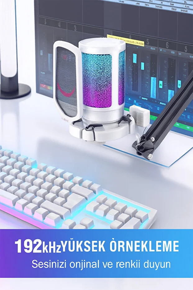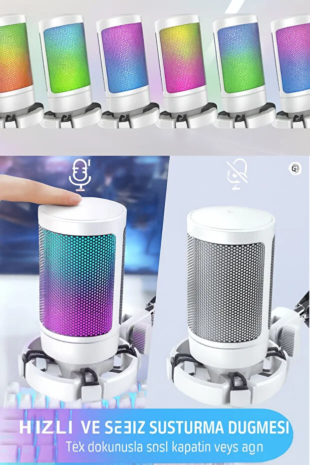 ميكروفون TECHNOMEN USB المضاء RGB مع خاصية التبديل التلقائي للألوان، ميكروفون احترافي سهل التوصيل والتشغيل للبث والتسجيل