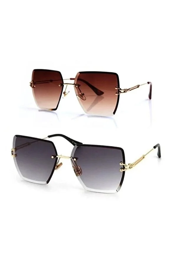 نظارات فيري - طقم من قطعتين - نظارات شمسية سوداء - قطع مربع - قطع كريستال - بدون إطار - حماية من الأشعة فوق البنفسجية 400