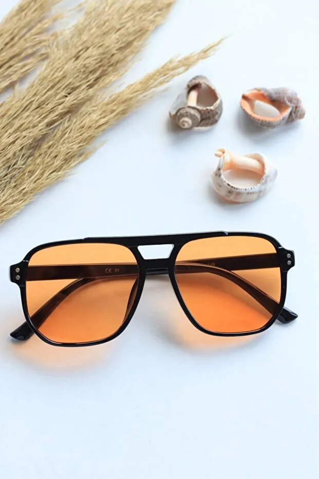 0 Review Of Product نظارة شمسية نيلو فاشون للجنسين بتصميم مربع مستطيل برتقالي أسود حماية من الأشعة فوق البنفسجية 400، طراز عتيق للموسم الجديد