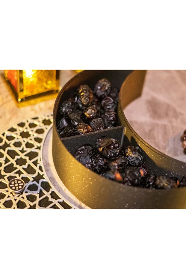 وعاء سكر وتمر على شكل هلال من هايبر ديزاين | صينية تقديم رمضانية بغطاء | قطعة ديكور أنيقة للطاولة