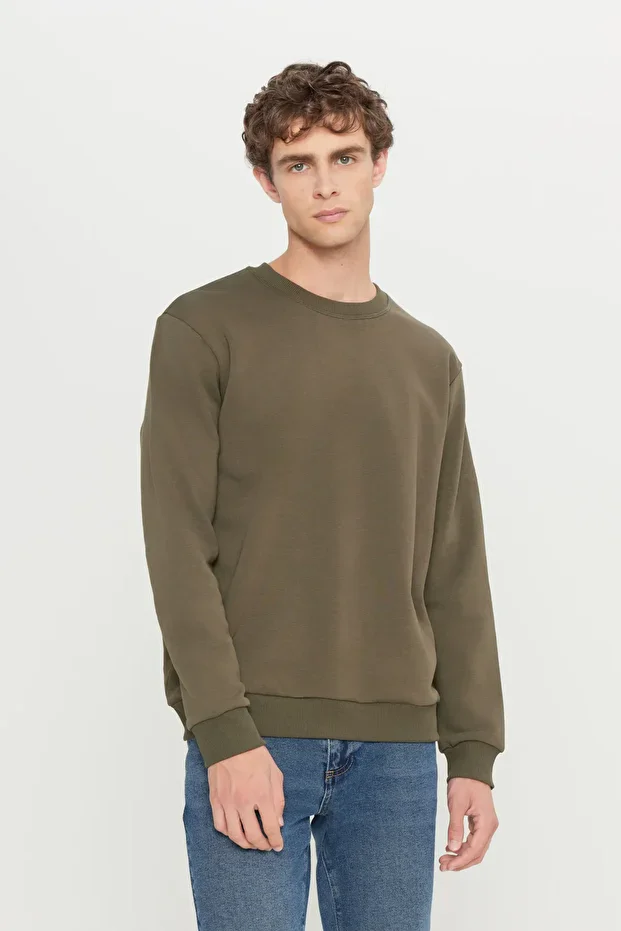 AC&Co / Altınyıldız Classics Men's Khaki Standard Fit Regular Cut Polar Fleece 3 Thread Crew Neck Cotton Sweatshirt