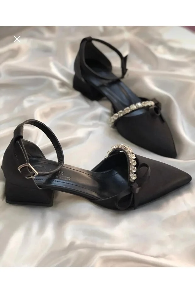 ALNASER MODA حذاء بكعب من الساتان - فيونكة بتفاصيل حجرية