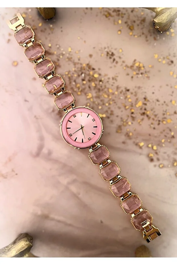 CLUPPOLOON ساعة يد نسائية من الحجر الوردي