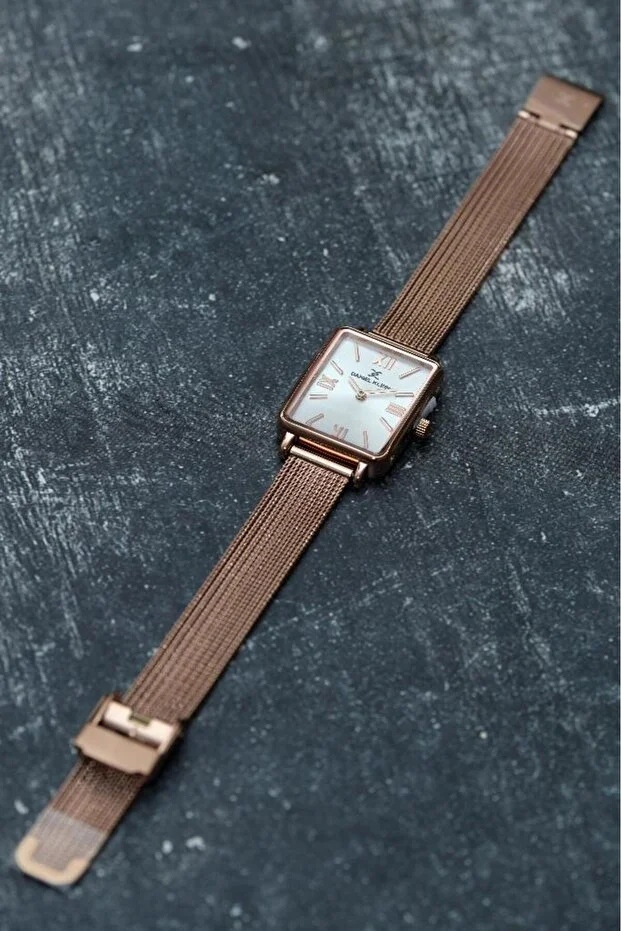 Daniel Klein DKE.1.10741 ساعة يد نسائية مستطيلة الشكل بسلك من القش بتصميم بسيط